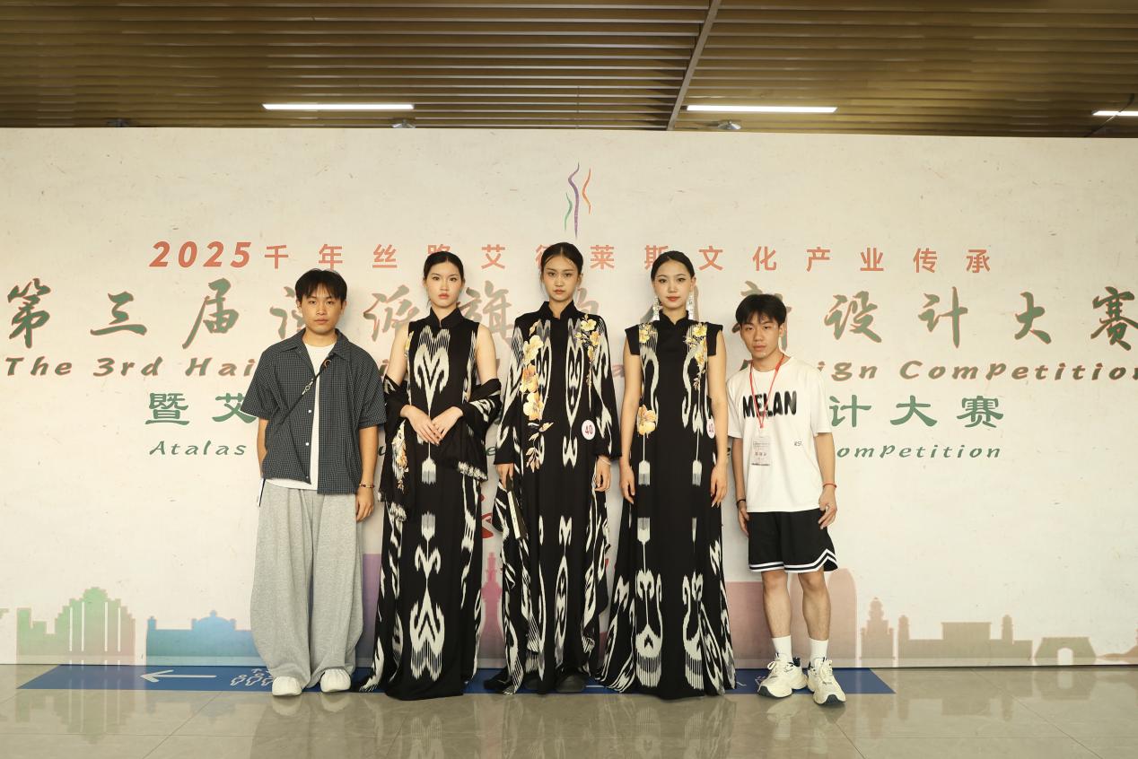 大賽最終評選出一等獎 1 名,獲獎設計師是賴嘉琪、張雷,作品名為《夢回絲路》;二等獎 2 名,分別是張子婧的設計作品《帕米爾疏影》、朱金標的設計作品《形色天成·東方雅韻》,三等獎 10 名,分別是侯辰蕊的設計作品《織夢青語》、莫艷玲的設計作品《芳華舊夢》、楊玉娟的設計作品《有“融”則靈》、羅昕、劉關林、曾偉華的設計作品《傳家》、王志麗的設計作品《西域風情》、繆思琪的設計作品《醒韻海瀾(藍)》、陳霄月的設計作品《ouroboros》、阿卜力米提·圖爾蓀托合提的設計作品《海派絲綢旗袍》、廖祿、馬一諾的設計作品《融·創—藍韻》、彭文黍、陳文婷、姚丁琦的設計作品《Rainbow Black(紅)》,獲獎作品在設計創意、文化表達、工藝技術與實用性等維度均展現出較高水準,充分體現本屆賽事 “創新傳承、融合發展” 的核心宗旨。