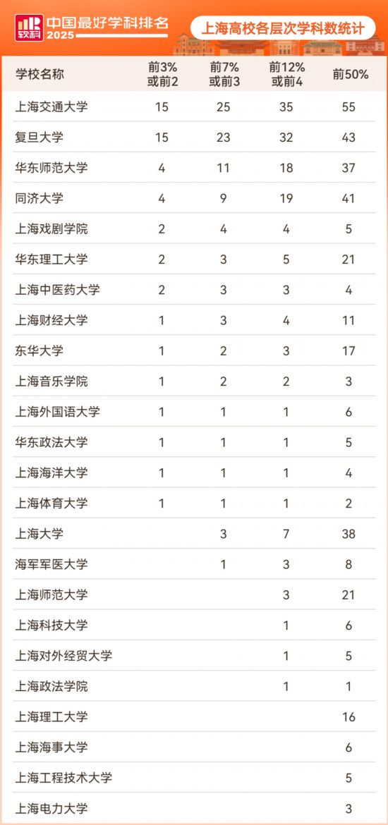 中國前3%的最好學科分布在哪些高校?上海這13個學科排名全國第一