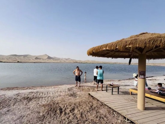 今年七月,在上海援疆力量的幫助下,澤普縣依瑪鄉一片沙漠荒地搖身一變成了“網紅景區”——黑水營沙漠公園。金色的沙丘與藍天相映,周圍是綠色的灰胡楊、綠草和繁花。沙漠與胡楊,南疆最有代表性的兩種景觀匯集一起,瞬間引來不少游客。彩虹滑道、觀光小火車、露營營地、演出舞臺一應俱全,到了晚上,時不時還有篝火表演,熱鬧非凡。記者留意到,與許多景區不同,這里的環境布置非常愜意,走在木棧道上,時不時就有妙趣橫生的帆布標語,讓人會心一笑。景區工作人員劉鑒向記者介紹道:“這里與一般的觀光景區不同,休憩氛圍更為濃厚。當你身處沙漠營地,被溫暖的黃色燈光所環繞,抬頭便能望見那漫天璀璨的繁星,這是一種非常浪漫的體驗。以休憩為中心,這一景區規劃的靈感,正是來源于上海的經驗?!眲㈣b說,黑水營沙漠公園景區的建設,豐富了澤普的旅游目的地類型,能吸引更多游客來到澤普,并讓他們在這里停留更長時間。
