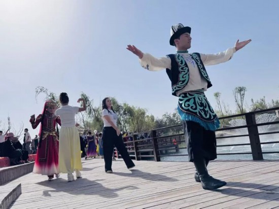 “我們都過上好日子了!”在南疆首個5A級景區——澤普金湖楊國家森林公園長壽民俗文化村,村民阿卜力米提興奮地告訴記者。曾經,他靠著務農、開餐飲店四處奔波討生活,日子也曾一度緊巴巴。然而2023年搬回到長壽村后,他過上了不一樣的生活,上海援疆力量將長壽村改造得漂漂亮亮,還吸引了不少游客?!斑@里的村民平時在景區工作,每個月能掙五六千塊錢,開農家樂的話,旺季有的甚至一天就掙一萬多?!彼f,最近來自上海的游客越來越多了,還有不少外國人來到這里,10月他打算再雇傭3名服務員,為旺季做準備……