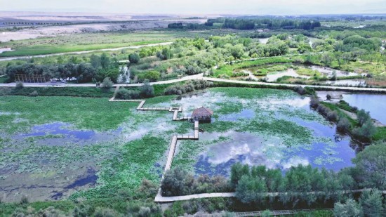 葉爾羌河的濤聲,將滬喀兩地的深厚情誼輕輕訴說。在無盡的戈壁荒漠中,宗朗靈泉景區猶如一顆被綠意輕撫的明珠,靜臥于葉城縣宗朗鄉的懷抱里。這里是南疆地區少有的濕地自然景觀。萬畝草場上馬蘭、蘆葦隨風舞動。步入山林,一棵棵千年柳樹恣意張揚,令人稱奇。最吸引人的便是那四季不斷的“靈泉”了。昆侖山的冰水融水從砂石巖層中不斷涌出,形成了多道水簾,匯成一池甘露。