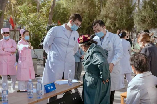 學術“盛宴”后,緊接著深入一線的惠民實踐。此次義診采用“勞模工匠+青年人才”雙人才模式,是對“精準援疆、質量援疆”理念的創新實踐。勞模工匠代表、原復旦大學附屬中山醫院內鏡中心主任姚禮慶分享了堅守醫線的初心與感悟;“醫苑新星”青年人才代表、復旦大學附屬華山醫院浦東院區副院長李驥則表達了青年一代服務邊疆、傳承薪火的堅定決心。此后,由40余名上海頂尖專家組成的多支醫療小分隊分赴巴楚、葉城、莎車、澤普四縣,將優質診療服務直接送到縣鄉群眾“家門口”,真正實現義診服務地州全覆蓋。義診現場早有聞訊而來的患者等候,專家們耐心細致地為每一位群眾問診檢查,制定個性化的診療方案,讓喀什群眾在家門口就享受到了上海水平的醫療服務。