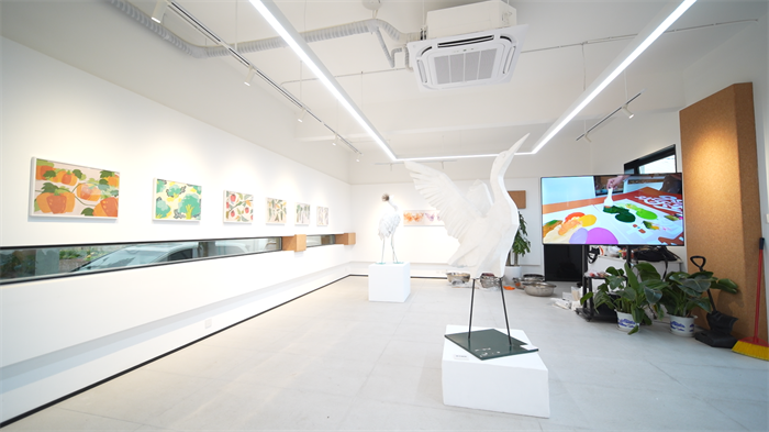 “農家樂:菜園美術館開館展”以沈楊村901歡樂農場為場域,參展藝術家包括于翔、周莉和歐陽婧依,他們從鄉村田野、植物生長與生態命題出發,以不同媒介回應菜園美術館這一獨特場域,使展覽成為一次關于自然生命、藝術觀念與社區生活的對話。如歐陽婧依的平板電腦繪畫《八蔬菜圖》則以數字媒介回應“菜園”的現實語境。她從農場的日常觀察出發,將番茄、黃瓜、茄子、青椒、蘿卜、南瓜、豌豆與西蘭花等農作物作為視覺主體,構成充滿生命力的當代“菜園繪卷”,從而使“菜園”這一空間在圖像世界中獲得新的鄉村意義。這三位青年藝術家的作品不僅回應了“農家樂”的展覽主題,也呼應了“一居一村”城鄉藝術社區建設的核心理念——讓藝術回歸土地,讓美育生長于生活。