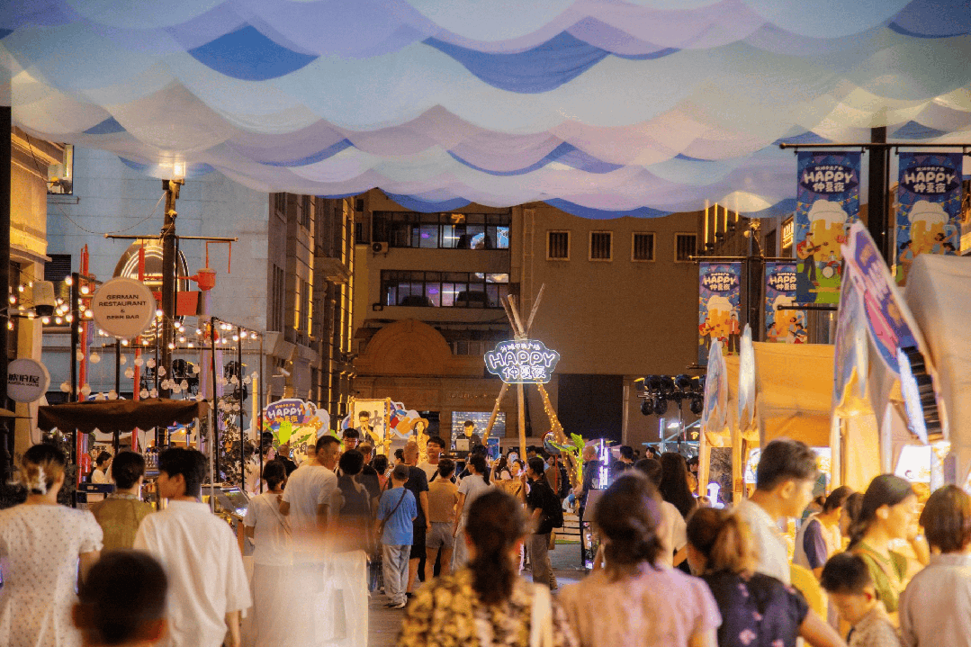 在外灘“最美玻璃穹頂”下,一場覆蓋“食、購、娛”的消費狂歡還在繼續,沉浸式夜間海派盛宴,外灘中央廣場數家品質商戶深度聯動,鵝島酒釀啤酒屋、德國精釀餐廳等奉上限定特調及套餐,更有全場滿額滿減消費券等疊加優惠。