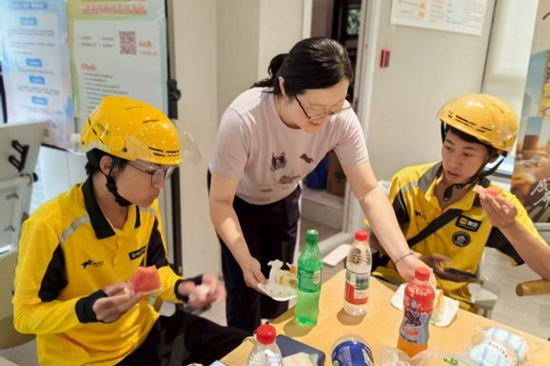 “跑單再急,安全第一!”零陵路美團站點負責人胡可反復叮囑騎手們注意道路安全,西木街區黨支部書記徐慧穎則結合夏季特點,重點宣講了電瓶車充電安全:“千萬不能‘飛線充電’,也不能把電瓶帶進室內,安全才是最大的本錢?!辟N心的提醒、清涼的飲品,讓騎手們在高溫天里感受到了實實在在的關懷。