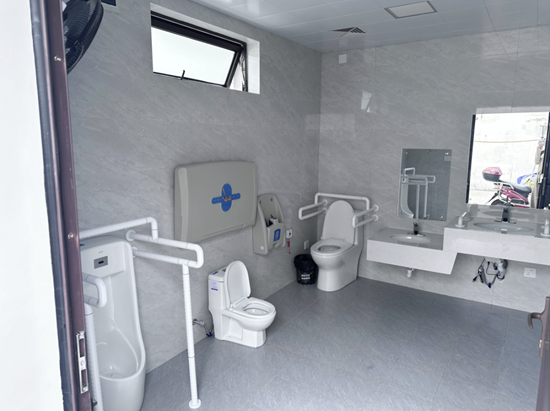 公廁內張貼了醒目的功能標識,為老年人和兒童提供清晰指引;新添的寶寶護理臺,也方便了年輕家長照護嬰幼兒。經過全面改造后,內部空間更加明亮,地面鋪設防滑磚,通風和照明條件顯著提升,整體環境煥然一新。