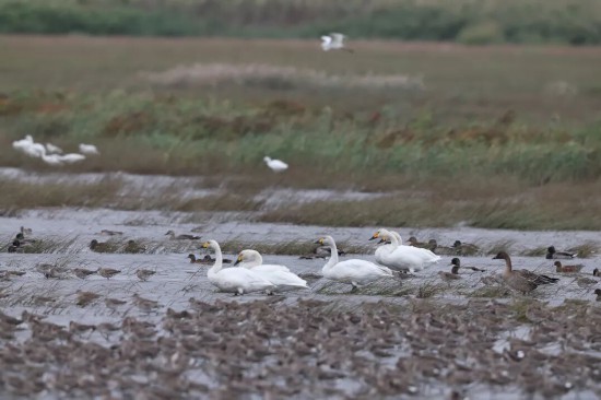 隨著氣溫持續下降,白頭鶴、小天鵝等更多候鳥陸續告別北方繁殖地,長途跋涉飛抵東灘越冬,屆時東灘保護區將迎來候鳥棲息的高峰期。