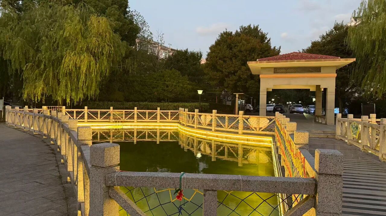 10月21日,記者走進石化街道的紫薇苑小區,看到小區的景觀河經過改造后重新蓄滿了清水,魚兒在水中穿梭往來。傍晚時分,岸邊燈帶次第亮起,粼粼波光與燈影交織,映照出一派靜謐而溫馨的社區夜景。