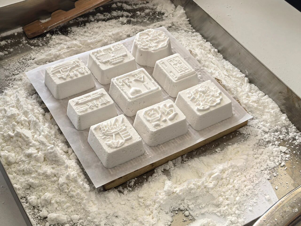 此次制作的重陽糕,最特別之處在于使用了印有“金山八景”的專屬模具。模具上清晰刻畫著“漁村”“楓涇”“沙灘”等極具金山地方特色的景觀圖案,將傳統文化與地域元素巧妙融合。