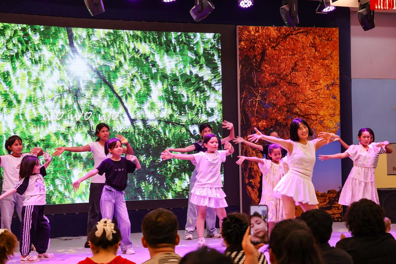 舞臺上,幾位小朋友的身影更成為現場最動人的亮色。來自紅旗小學生們共同準備了模特走秀節目,說起參賽的緣由,“以前來體育館就覺得這里好玩,這次能站在舞臺上,我和小伙伴們練了15天呢!”