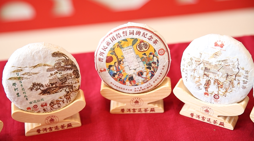 活動下半場,非遺文創展區成為吸引市民駐足的“熱門打卡點”。誓詞碑造型的普洱茶禮盒獨具匠心,哈尼族傳統刺繡茶席、絕版木刻版畫將寧洱非遺文化與海派文化的審美需求巧妙融合,不少市民拿起展品細細端詳、拍照留念。