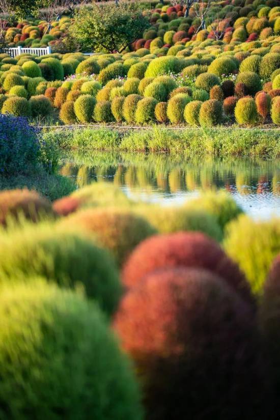 十月下旬的最后一周,地膚如約進入紅綠相間的最佳觀賞期。地膚的變色是一個動態的過程,從綠色→黃綠色→紅綠相間→酒紅/粉紅色,300000株彩色地膚呈現的斑斕畫卷,即將成為滬上金秋頂流。