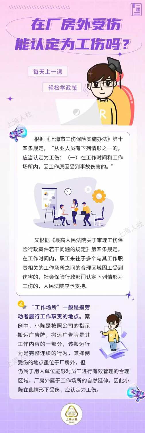 小陳在一家廣告公司從事廣告制作安裝工作。上個月,小陳將一塊廣告牌從單位廠房搬運至廠房門外停放的貨車車廂上,經過廠房外臺階處時,不慎摔倒受傷。小陳要求公司為他申請工傷認定,但公司認為小陳摔傷的地點在廠房外,不屬于“工作場所內”,因此不算工傷。像小陳這種情形能否認定為工傷?
