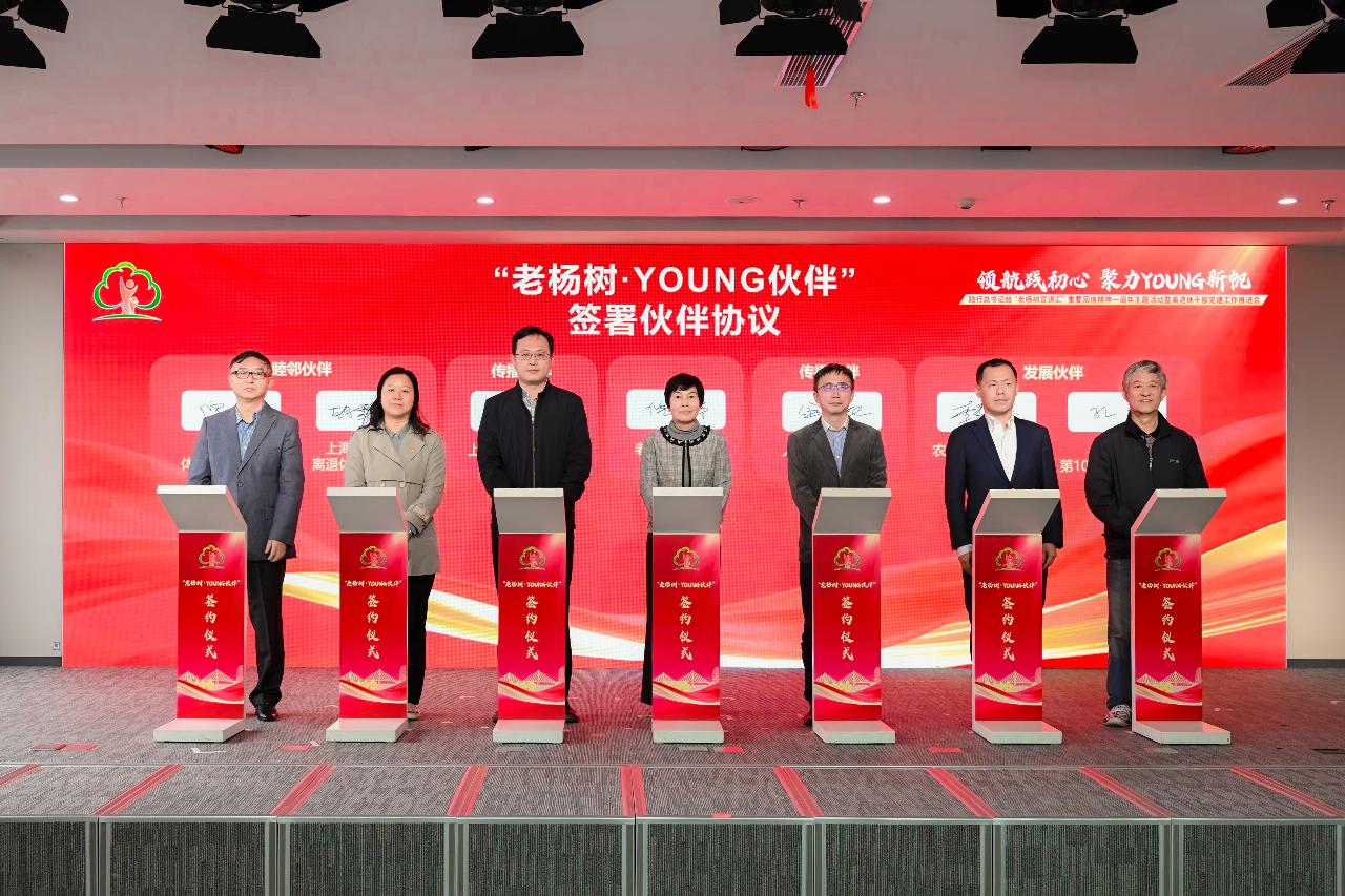 市城鄉建設交通工作黨委“樂齡建交”宣講隊、市經信黨委“銀齡‘經’語”宣講團、復旦大學“星火”黨員志愿服務隊、上海理工大學“尚理銀發”宣講團、楊浦區青年志愿者協會、上海城投水務集團治水惠民青年志愿者服務隊、人民城市工作室、上海嗶哩嗶哩科技有限公司、上海水產集團離退休干部黨支部、上海市社區體育協會黨支部、上海海關第10退休干部黨支部、農業銀行楊浦支行等12家單位、團隊成為首批“老楊樹·YOUNG伙伴”,并與“老楊樹宣講匯”團隊負責人倪來娣一起簽署了伙伴協議。