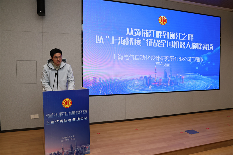 旌旗獵獵,戰鼓催征。全國總工會第二屆職工數字化應用技術技能大賽決賽即將在福建福州舉行,11月4日,在賽前動員會上,上海代表隊已整裝待發。這支由工業機器人、數據安全、無人機三大工種9名選手及6名生成式人工智能觀摩賽選手組成的精銳之師,將代表上海產業工人出征。