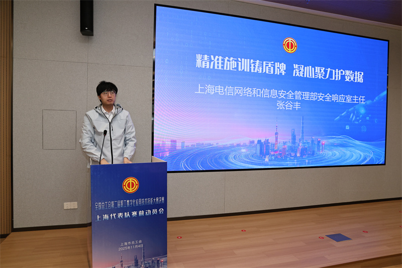 面對競賽內容涵蓋法律法規、數據時代與人工智能挑戰的多模塊特點,數據安全管理員集訓隊技術指導張谷豐介紹,在市總工會與上海電信工會的支持下,迅速組建了專業的指導團隊,聚焦政策法規的解讀,技防戰術實訓與AI安全應用的重點方向,確保每位選手都能得到精確的指導。