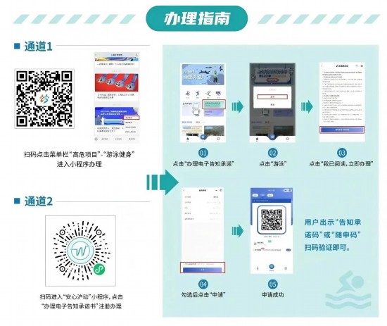 依據《上海市高危險性體育項目管理辦法》第十一條規定,所有進入游泳場所的泳客入池前務必認真閱讀并填寫《游泳項目安全風險告知承諾書》,充分了解相關安全風險,具體辦理指南如下: