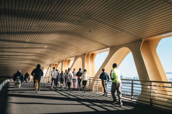 起點設于油罐藝術中心,沿濱江綠道由北向南奔跑,途經龍美術館(西岸館)、滑板公園、徐匯濱江黨群服務中心,最終抵達南園公園折返,全程大約6公里。