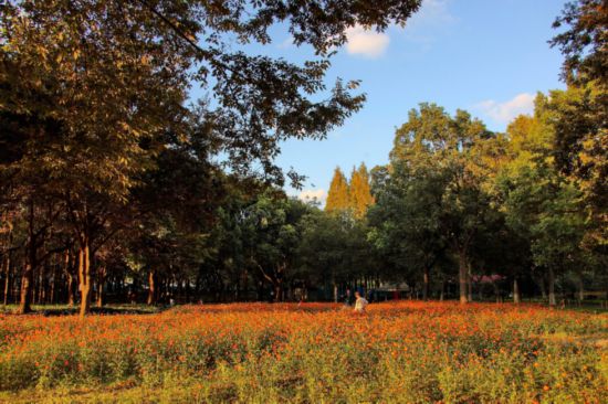 慢跑路線穿梭于水杉林、香樟林等不同植被區