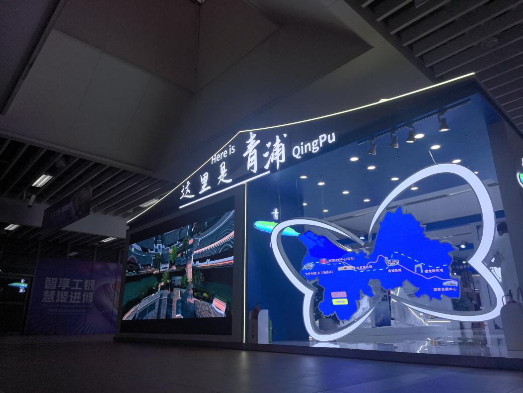 展館以江南建筑美學為設計元素,外部造型如展翅蝴蝶,寓意青浦昂揚向上的發展勢頭。通過“國家戰略”“產業高地”“六業融合”與“生活品展區”四大板塊,系統呈現了青浦作為長三角樞紐門戶的戰略定位、產業生態與人文底蘊?,F場不僅展示了珠峰測量裝備等“青浦智造”成果,還通過非遺工藝、農特產品和智能家居場景,生動傳遞出“高顏值、最江南、創新核、溫暖家”的區域發展意象。