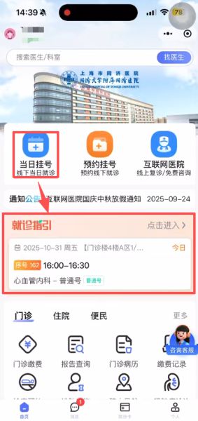 升級后的界面經過全面優化,布局更清晰、操作更流暢。核心功能與新增服務均直觀呈現,快速上手?!爱斎諕焯枴?、“預約掛號”、“報告查詢”、“門診繳費”等高頻應用齊聚首頁,無需翻找。同時,這側重磅推出“門診全流程指引”。用戶會發現,掛號成功后,后續就診的每個步驟,系統都將自動推送提醒。清晰展示就診時間、科室位置(如“門診樓4樓A區”)、取藥窗口、檢查預約或登記等關鍵信息,宛若用戶的隨身就診助手。