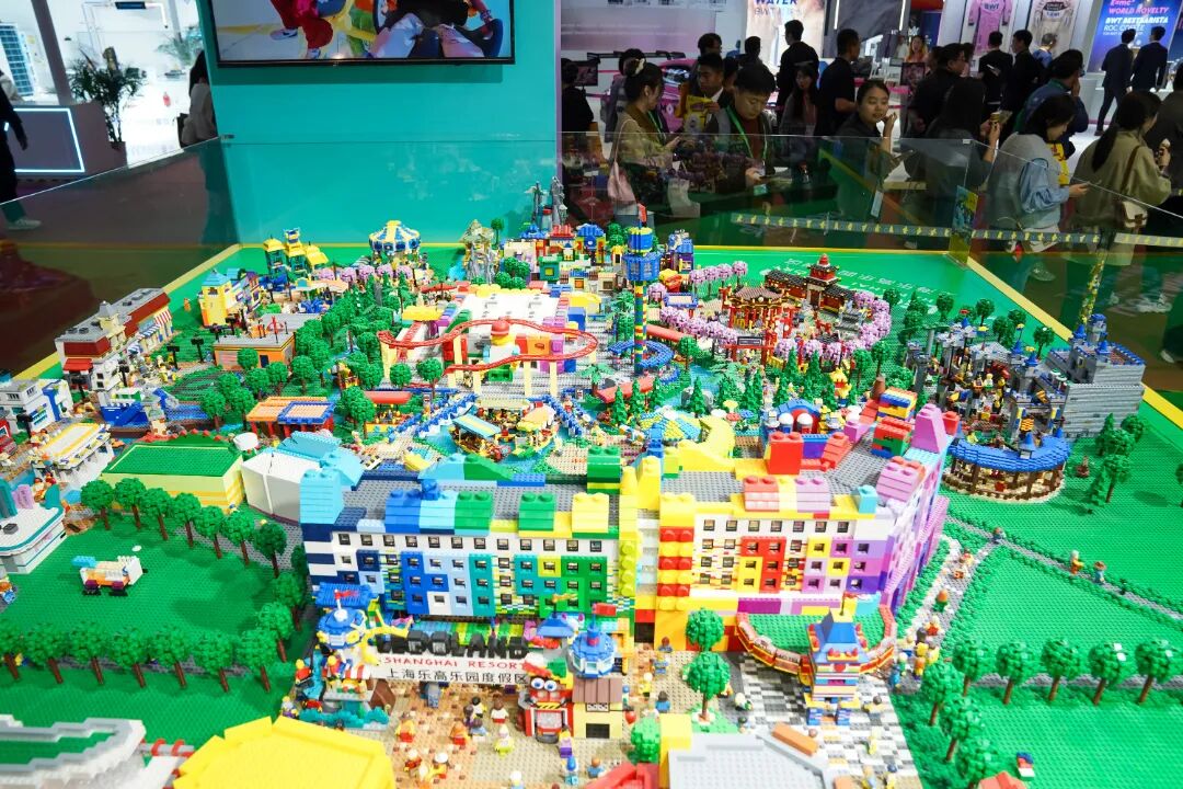展臺前,觀展市民排起長龍,大家熱情高漲,想要一睹“玩樂之城”的風采。步入展區,就能看到“上海樂高樂園度假區概念設計模型”,它由近10萬顆樂高積木搭建而成,包括樂高城市、積木街道等核心特色區域。從奇幻的主題園區到充滿想象的游樂體驗,觀眾們在展臺中就能“云游”樂園全景,沉浸式感受這座充滿想象力的玩樂世界。