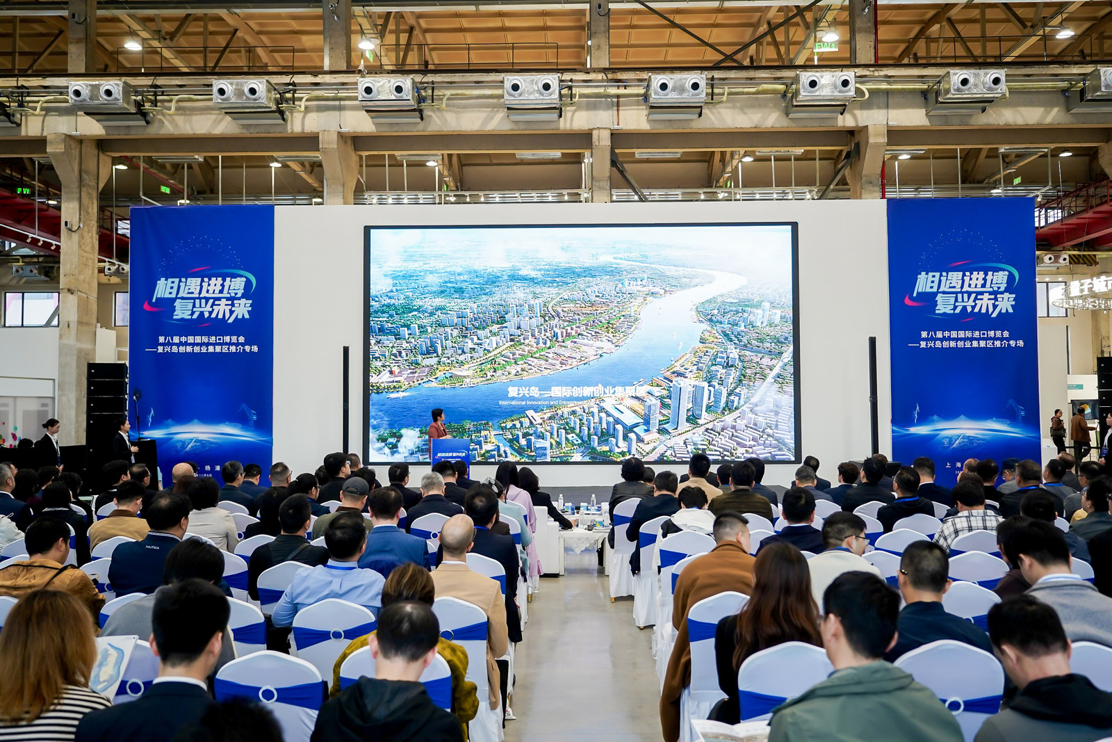 當前,復興島正圍繞“數字智能島、設計藝術島、人民城市島”定位加速建設。11月8日,“復興島創新創業集聚區推介專場”在楊浦復興島船臺公園舉行,近300名嘉賓包括進博會參展商、地產開發商、擬合作企業、金融機構等企業代表齊聚楊浦濱江,共話合作機遇,共探這座“黃浦江畔明珠”的發展新路徑。