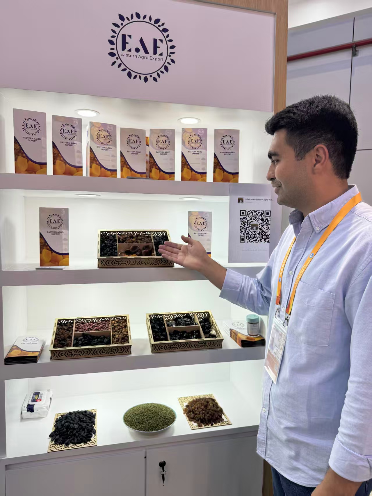 博季羅夫的東方農業出口公司(Eastern Agro Export,EAE)是烏茲別克斯坦最大的干果、堅果及豆類生產商和出口商之一,今年首次參加進博會,開幕第三天便已結識新客戶、拿下新訂單。