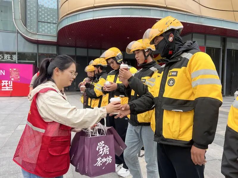近日,金山衛鎮新鎮街區黨支部聯合“公益合伙人”——學府茶咖坊,為奔波在配送一線的外賣小哥、快遞員們送上熱氣騰騰的奶茶,不僅驅散了初冬的寒涼,更讓戶外勞動者們感受到了來自街區黨組織與愛心商鋪的關懷。