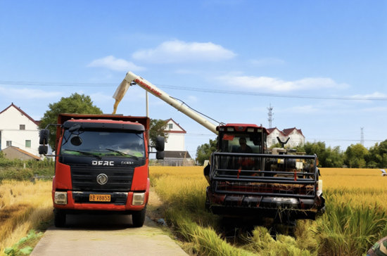“今年的收成比去年更好?!焙献魃缲撠熑岁悎蛳橥褲M車廂的稻谷,臉上洋溢著收獲的笑容,“今年天氣比較給力,雨水和溫度都剛剛好,稻子長勢很喜人。我們也加強了田間管理,收成比往年更高?!标悎蛳榻榻B,合作社在種植過程中采用了“綠色防控+測土配方施肥”的模式,既保障了稻米品質,又提高了畝產效益。