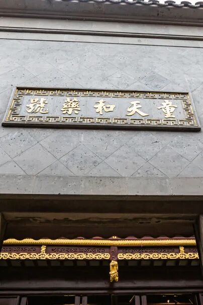 童天和藥號建于清朝嘉慶年間的1810年左右,至今已有210多年的歷史?,F在童天和的石庫門仍為百年前的原物,圍墻高大,清水細磚的高墻正中刻有描金“童天和國藥號”字樣店招。