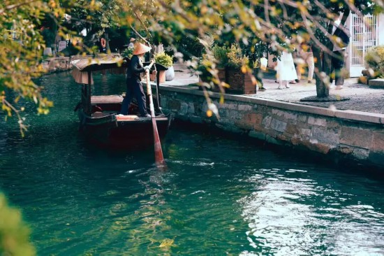 手搖船以木質結構為主,船身狹長,船夫通過手動搖櫓行進轉向,速度不快,節奏舒緩,完美貼合水鄉“慢生活”的意境。