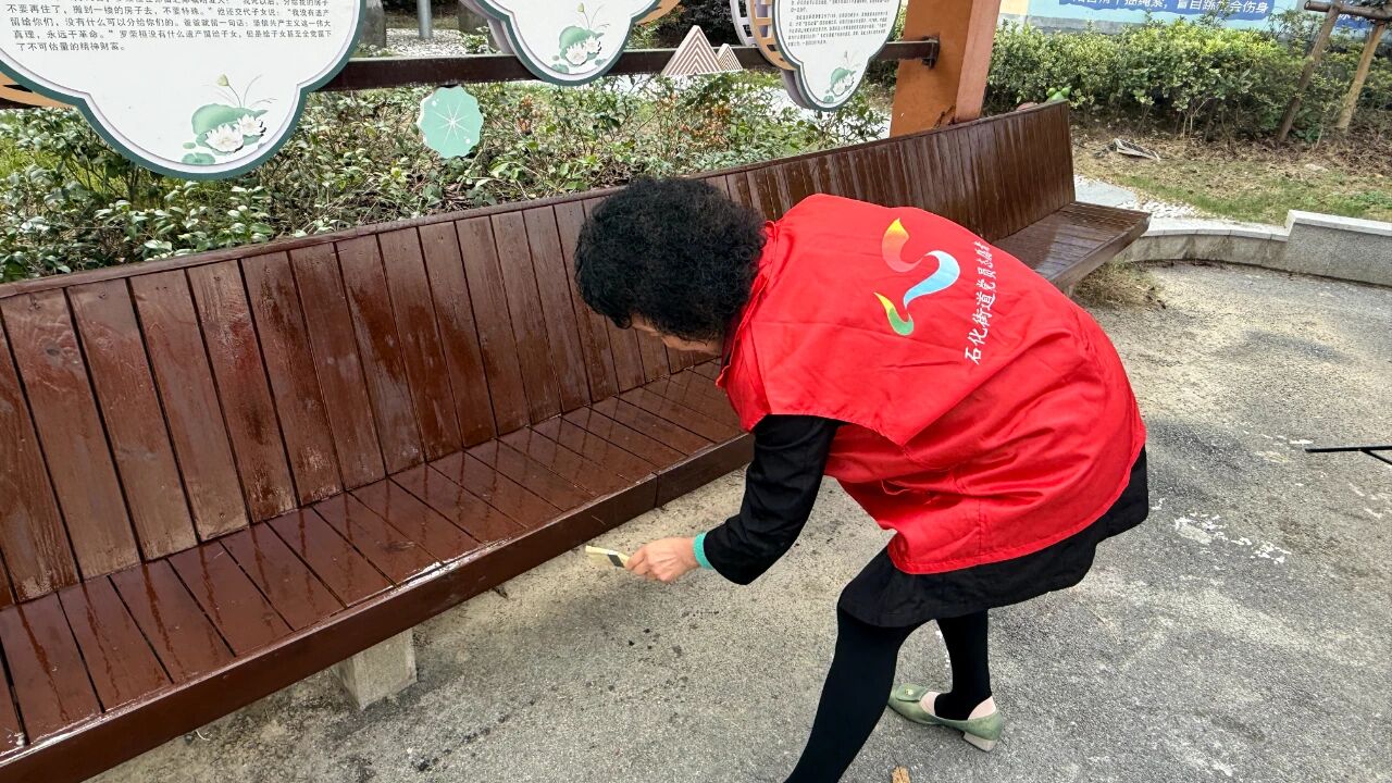 記者在石化四村看到,幾名身穿紅色志愿者馬甲的居民手拿刷子,將褪色的木質長椅重新涂上桐油與清漆,一張張舊椅煥然一新?!艾F在大家沒事的時候,就過來坐著聚聚,嘮嘮嗑?!本用裢蹙競バχf。